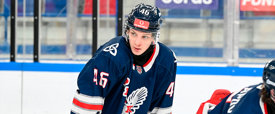 Reaktor forward David Romanov speaks with the media after a following 2–4 loss agaisnt Loko–76.