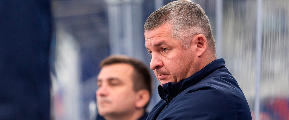 Reaktor Head Coach Igor Fyodorov speaks with the media after a following 2–3 overtime loss against Ladya.