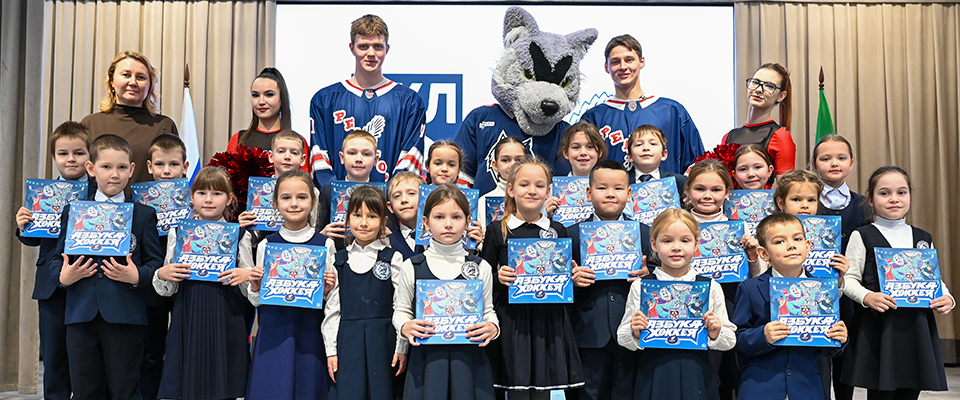 Then the students asked our players questions. There were so many questions—their interest spoke volumes about their passion. At the end of the JHL Hockey Lesson, the team captain presented the Lyceum's director, Nadezhda Germanovna Shandrenkova, with an exclusive Reaktor jersey autographed by all the players. Each student also received a souvenir–a book on ABCs of Hockey and invitations to Reaktor's upcoming matches against JHC Molot.