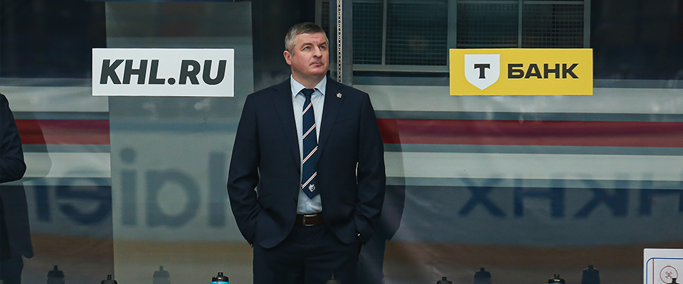 Reaktor Head Coach Igor Fyodorov speaks with the media after a following 3–4 loss against Omskie Yastreby.