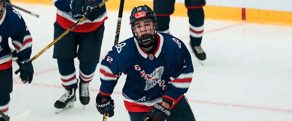 Reaktor player Kondrat Reshetnikov speaks with the media after a following 6–1 win over Tyumensky Legion.