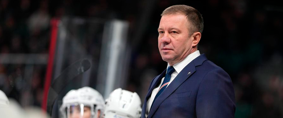 Neftekhimik Head Coach Oleg Leontyev speaks with the media after a following 2–3 overtime loss against Ak Bars.