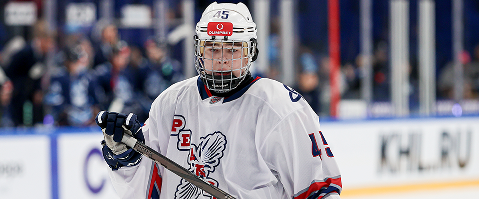 Reaktor forward Vladislav Chertkov talks with the media after a following 3–1 win over Krasnoyarskie Rysi.