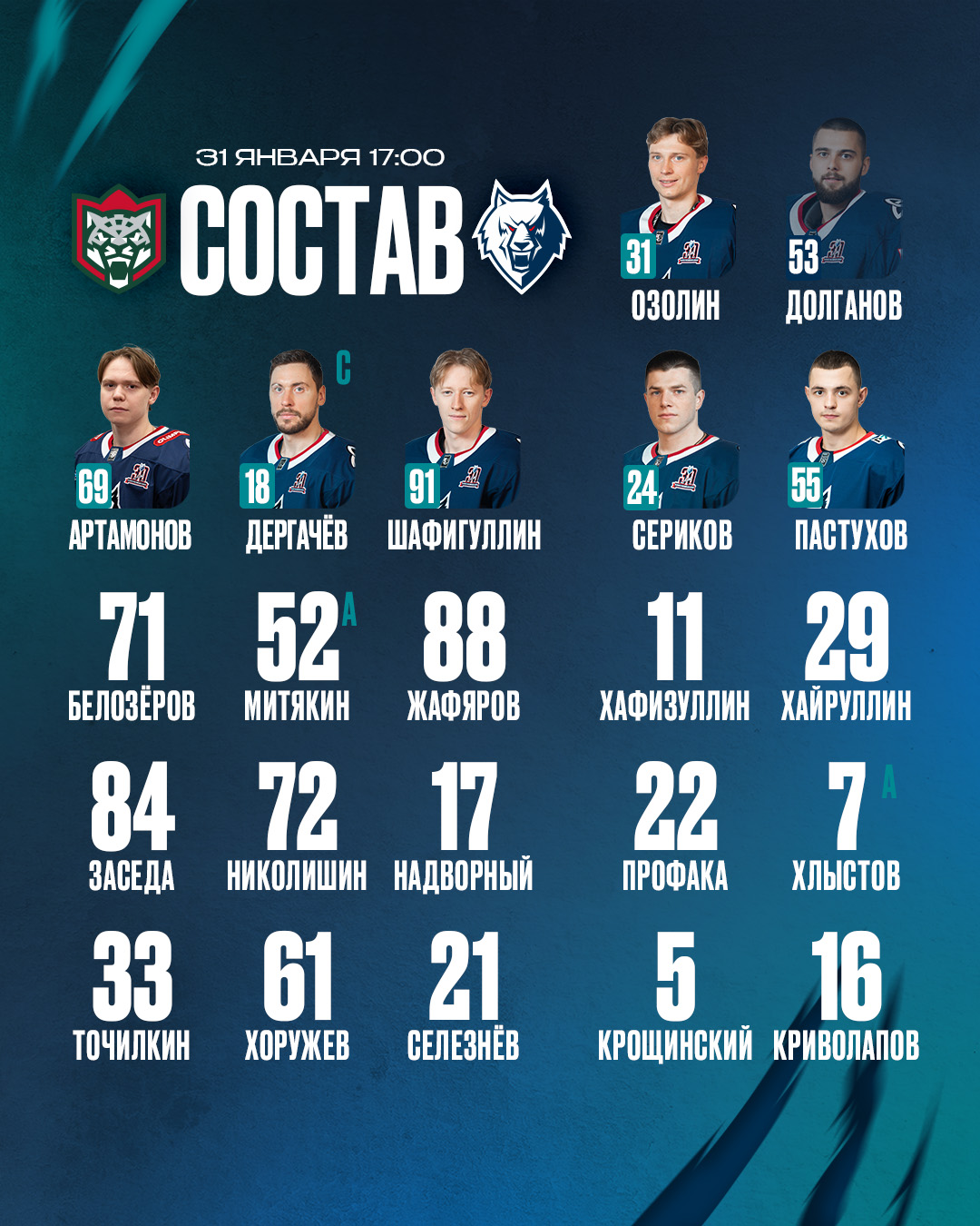 «Ак Барс» — «Нефтехимик»: состав нашей команды