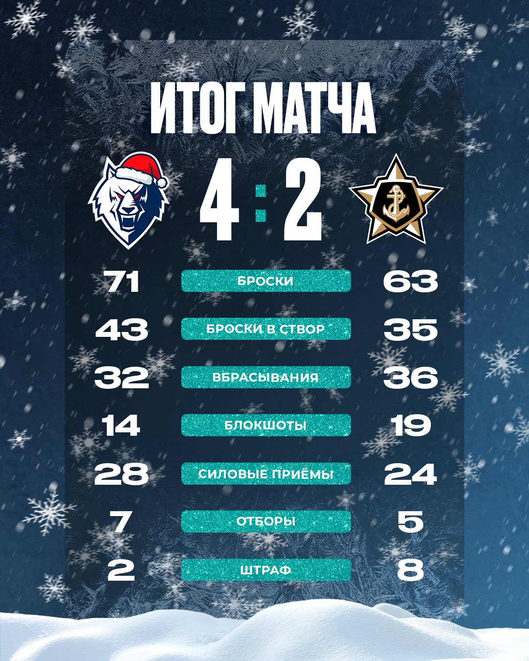 Надо отдать должное «Адмиралу». Команда при счете 2:2 играла как ни в чем не бывало, заставляла трудиться нашей обороне и голкиперу в полную мощь. Но остановить «волков» уже было невозможно.