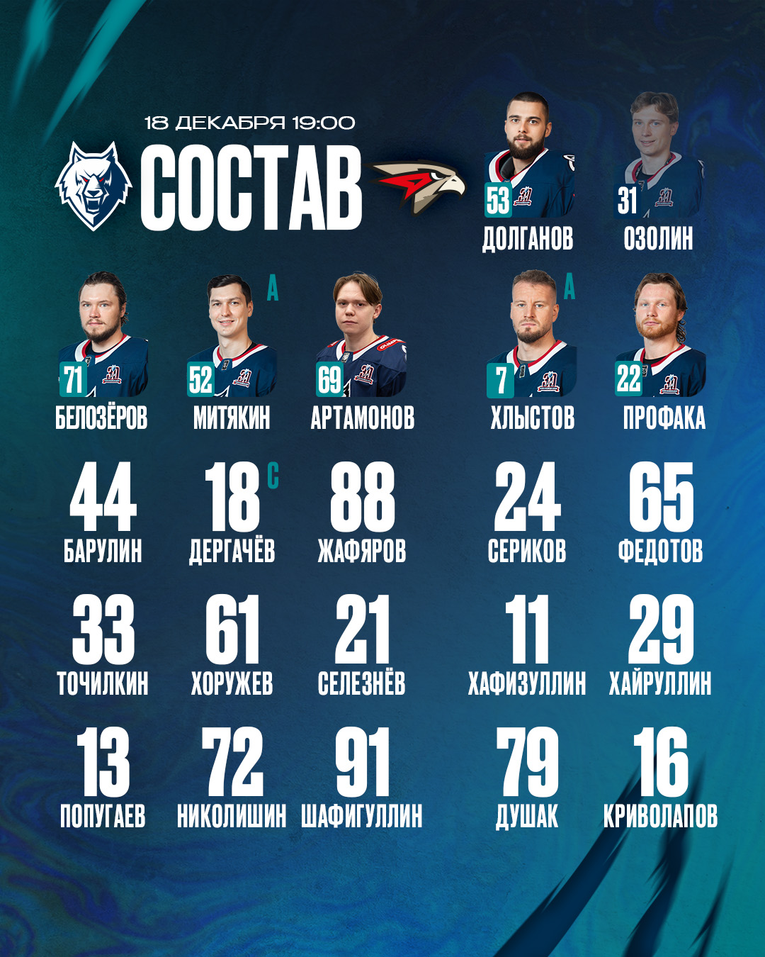 «Нефтехимик» — «Авангард»: состав нашей команды
