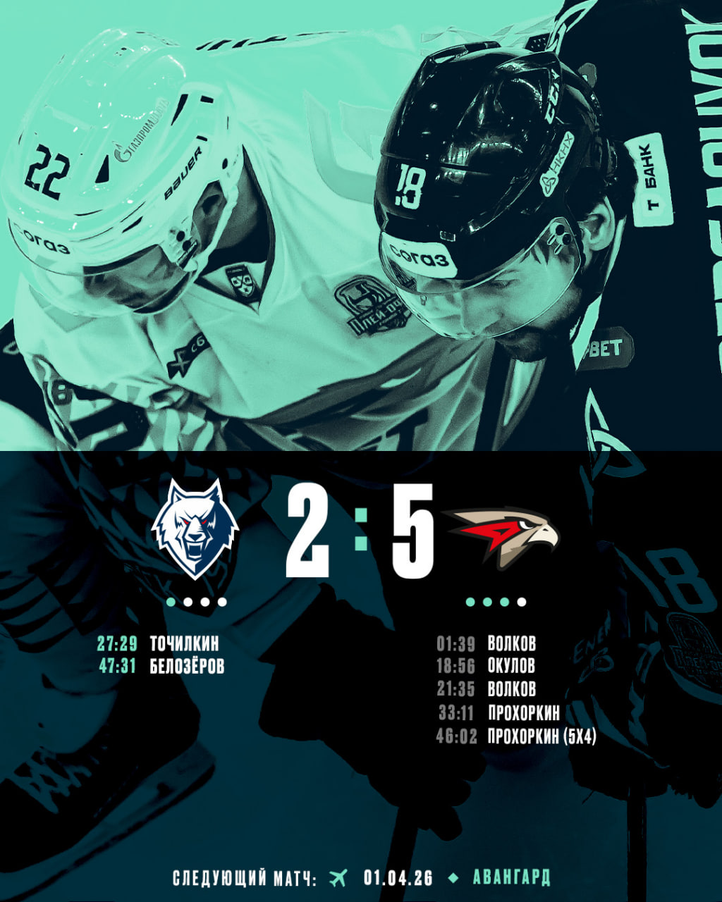 Гости взяли инициативу с первых минут. Уже на второй минуте Александр Волков открыл счёт – 0:1. Нижнекамцы выровняли игру, но на исходе первого периода Константин Окулов удвоил преимущество омичей: шайба залетела в ворота Филиппа Долганова после рикошета от Тимура Хайруллина – 0:2. Обидный гол в самый неподходящий момент.Второй период сложился ещё тяжелее. Волков оформил дубль уже на 22-й минуте – 0:3. Казалось, результат сделан. Но «Нефтехимик» не сложил руки – Герман Точилкин переиграл Никиту Серебрякова на пятаке и сократил счёт – 1:3. Арена почувствовала надежду.
