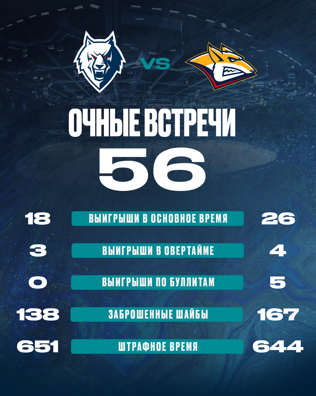 Полностью история встреч соперников насчитывает более 50 игр и выглядит следующим образом.
