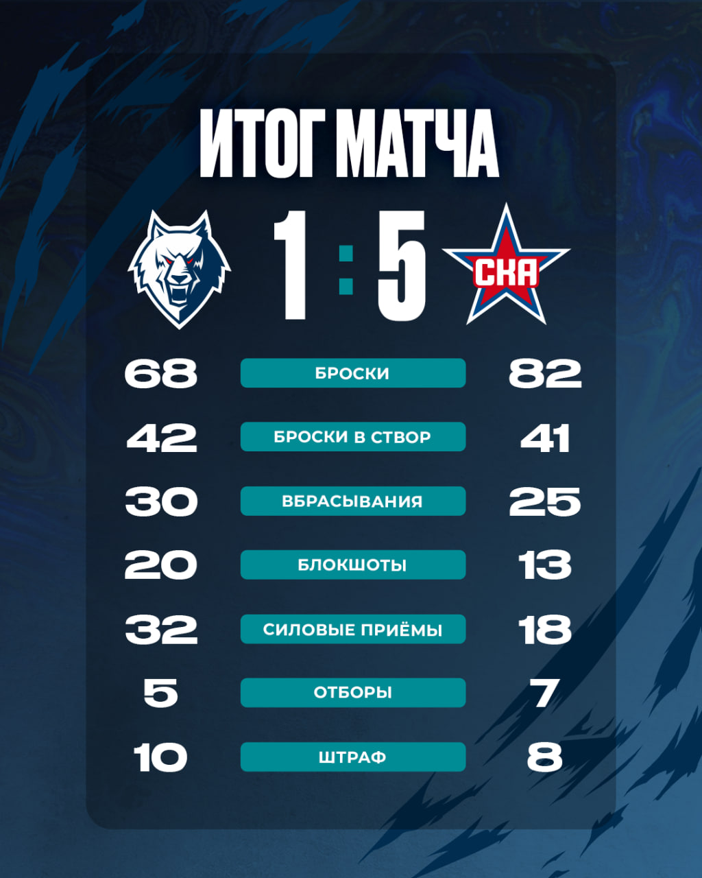 Не обошлось и без удалений. В общей сложности команды «заработали» 10 минут штрафа. 6 — «волки», 4 — армейцы.