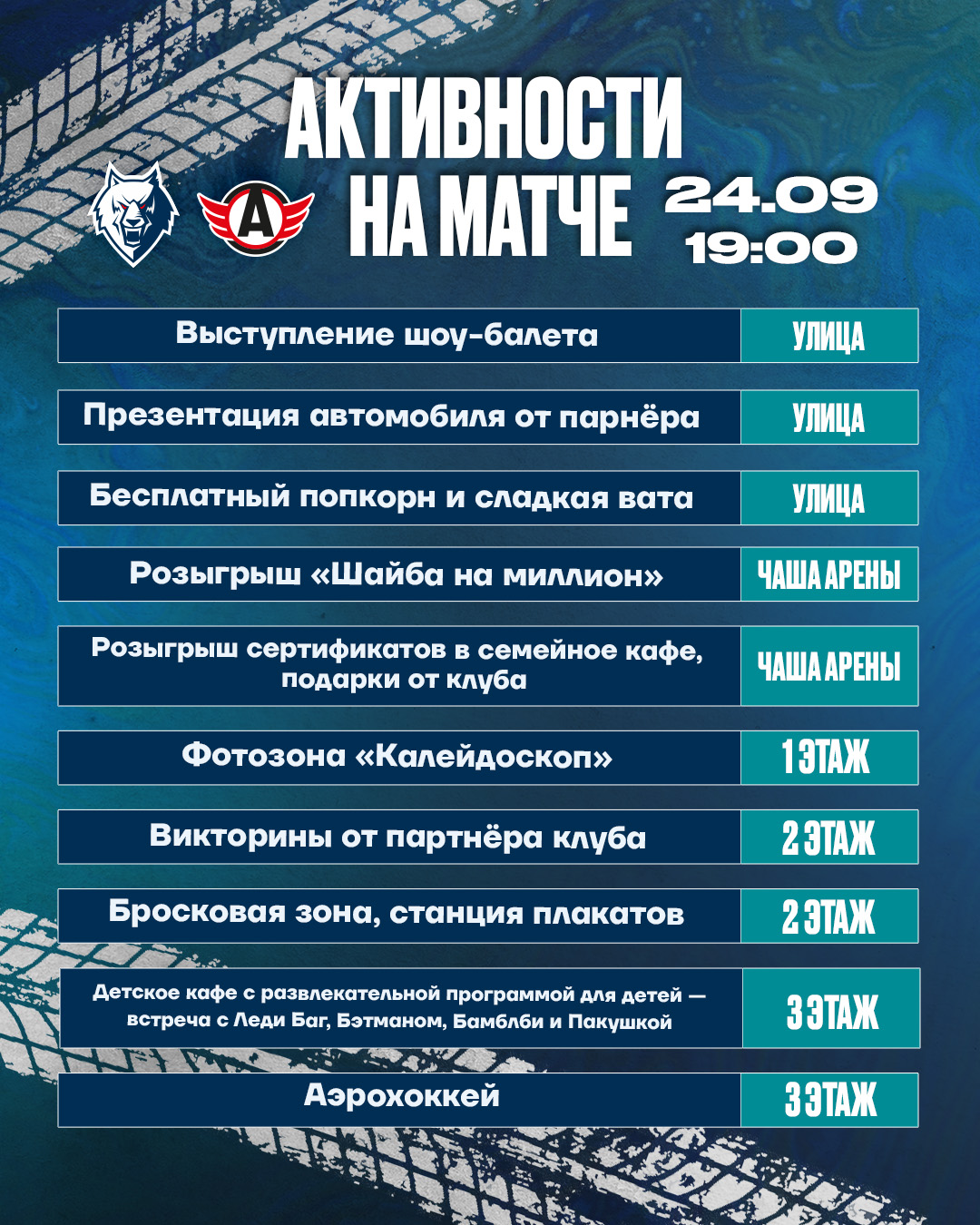 В программе этого захватывающего события каждый болельщик найдёт что-то по душе: яркое выступление шоу-балета, показ нижнекамских байкеров, викторины и розыгрыши призов. И, конечно, вас ждёт динамичный хоккей и море ярких эмоций вместе с нашей любимой командой! Полностью программу активностей смотрите ниже.210925.jpg)