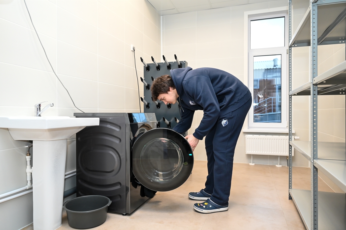 Иногородние хоккеисты получили на порядок лучше условия проживания в одном из корпусов на базе «Алмаш». Ребята расселены по комнатам, в каждой по 4 человека. В общем холле можно собраться, поболтать и посмотреть телевизор. Есть отдельная прачечная комната со стиральной машиной и сушилкой. Очень скоро в спальнях появятся более просторные и вместительные шкафы, холодильники, будет оборудована своя точка доступа в интернет.