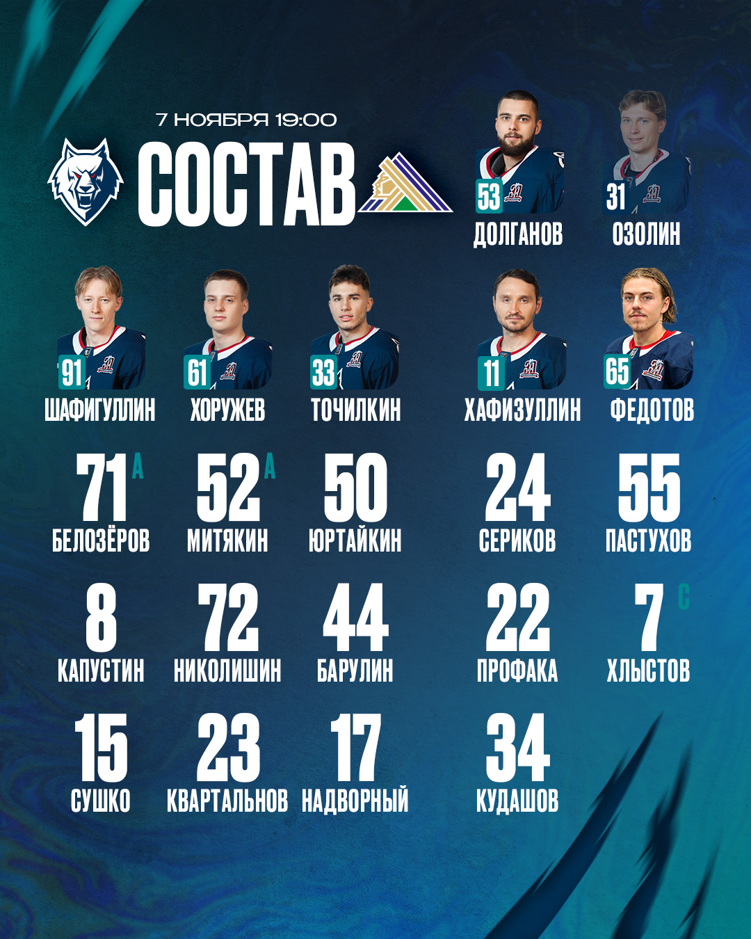 «Нефтехимик» — «Салават Юлаев»: состав нашей команды