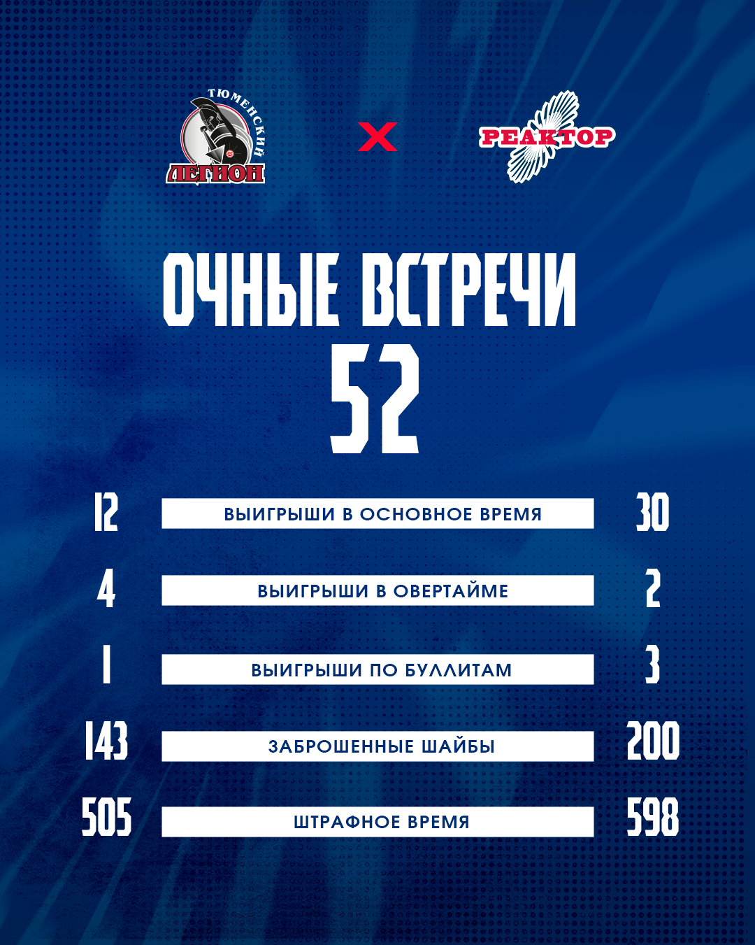 Команды встречались на льду 52 раза. На счету «Реактора» побед больше - 35 против 17-ти.