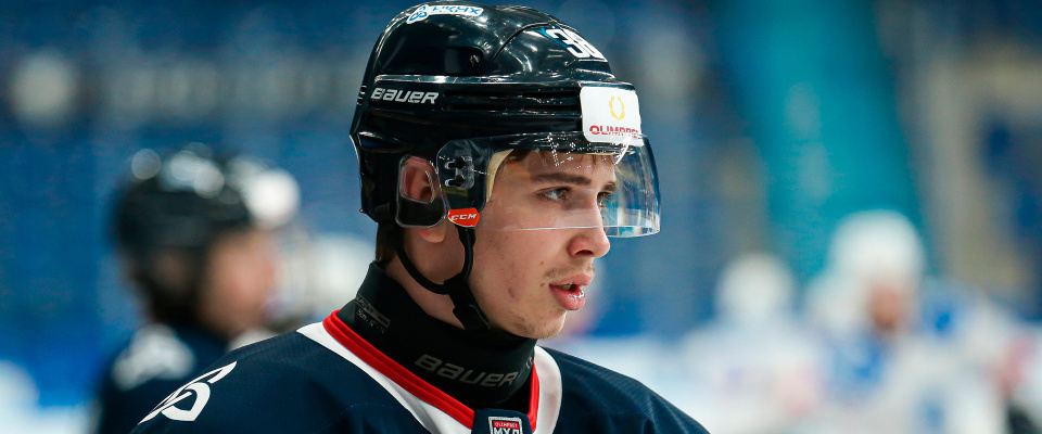 Reaktor defenseman Alexei Poteryayev speaks with the media after a following 5–4 overtime win over Belye Medvedi.
