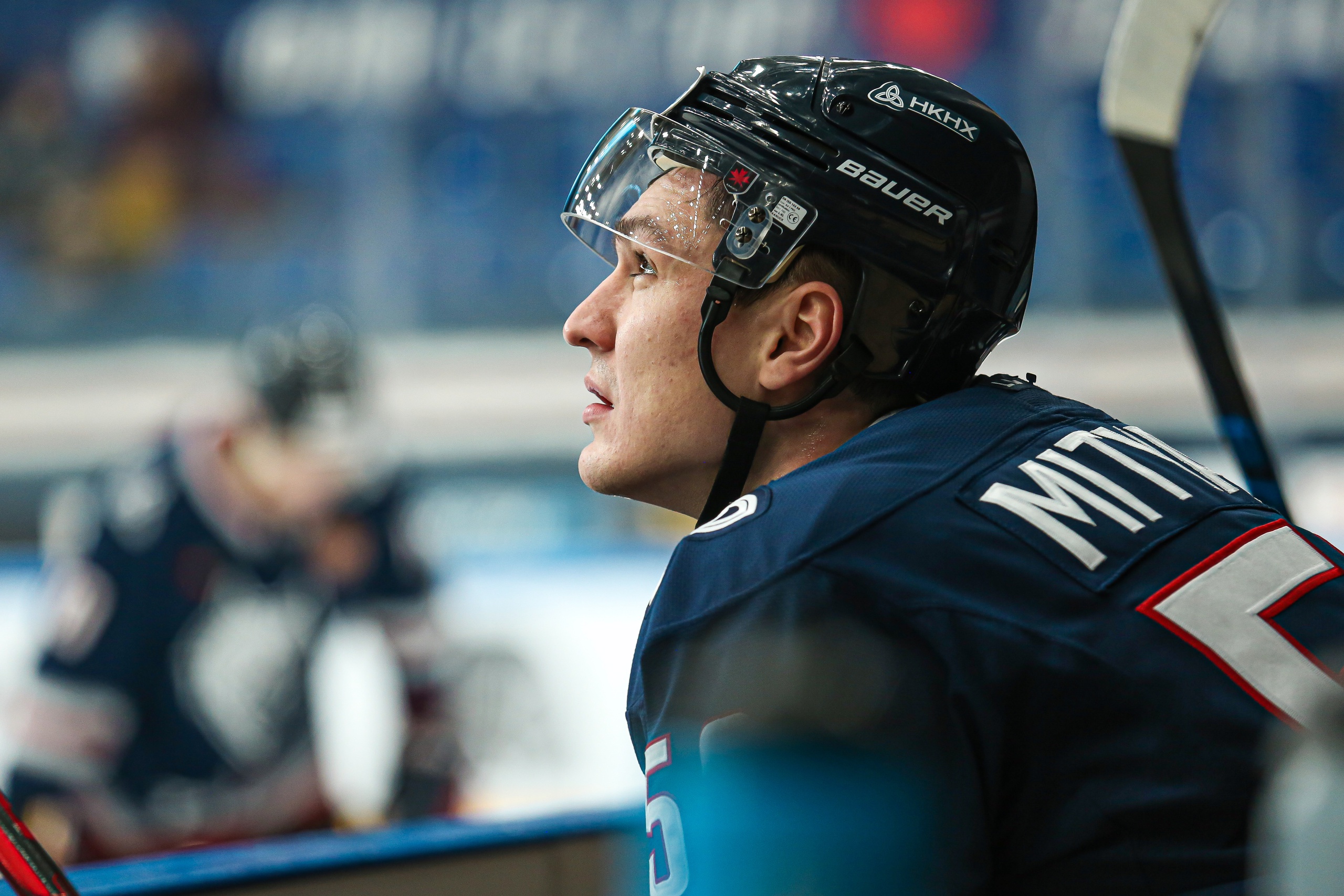 Evgeny Mityakin speaks with the media after following loss against Traktor.