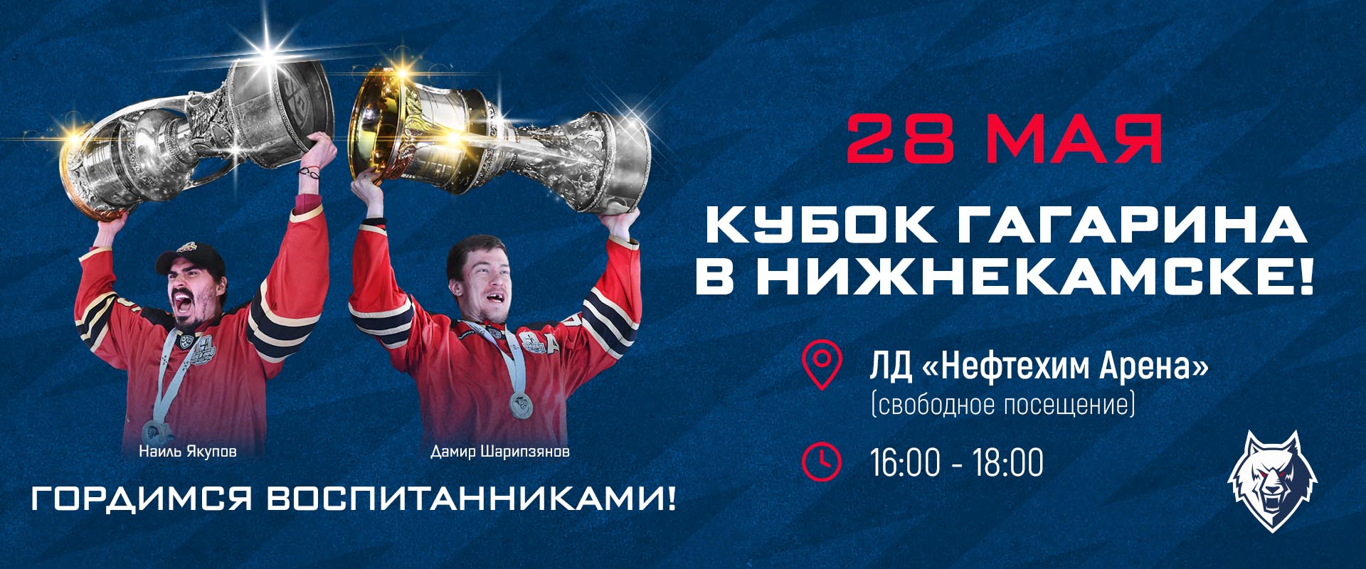 05/28/2021 on Friday you can visit presentation of Gagarin Cup at the Neftekhim Arena (4.00 PM – 6.00 PM).