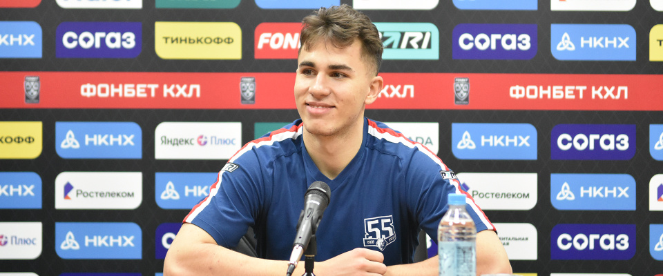 Neftekhimik forward German Tochilkin speaks with the media after a following 3–2.