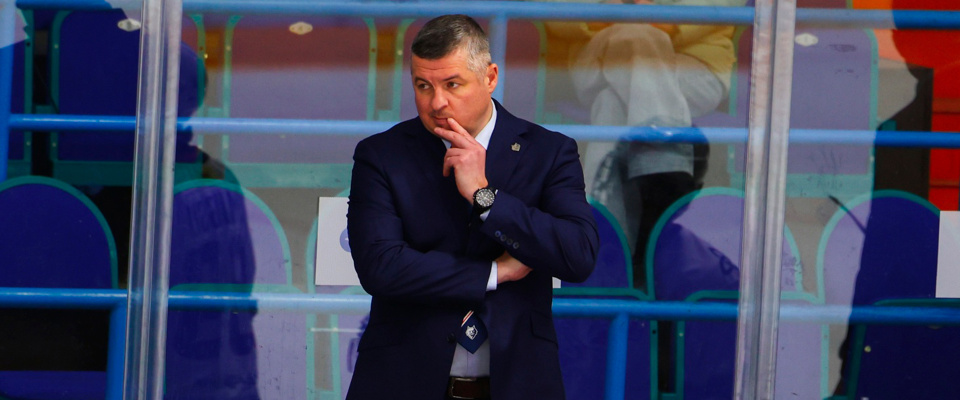 Reaktor Head Coach Igor Fyodorov speaks with the media after a following 2–8 loss against Sibirskie Snaipery.
