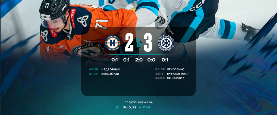 Neftekhimik lost to Sibir 2–3 (SO).