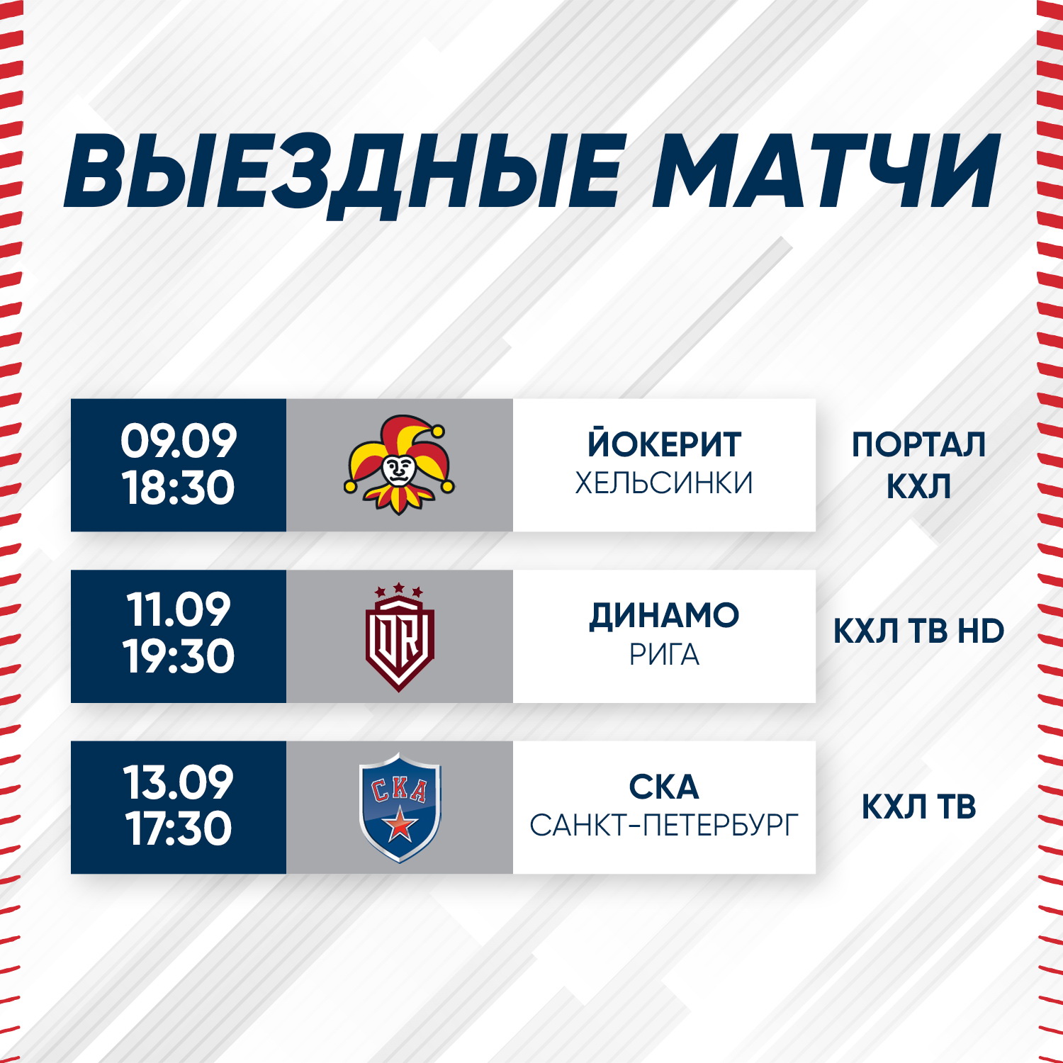 09.09.2020 vs «Jokerit» ⏰ 6:30 p.m. KHL WEBSITE