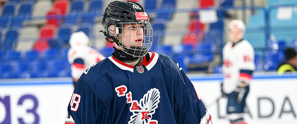 Reaktor forward Oleg Neyevin speaks with the media after following 3–4 overtime loss against Krasnoyarskie Rysi.
