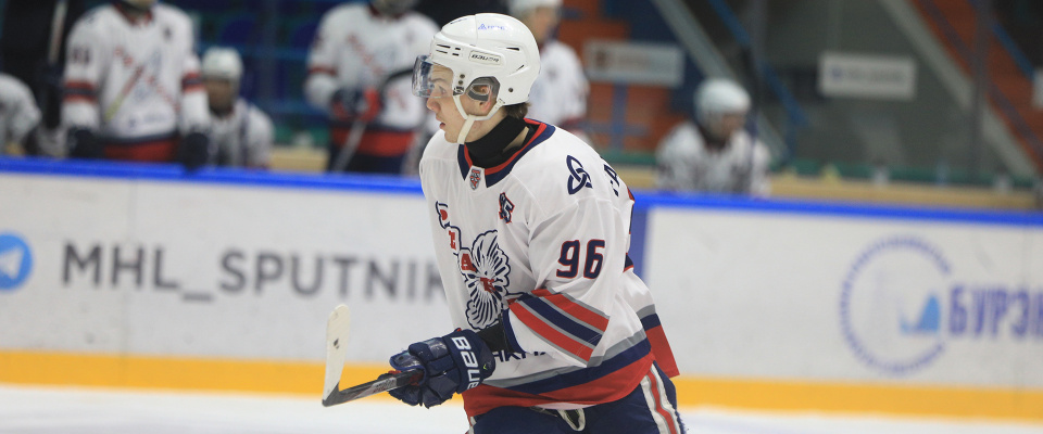 Reaktor forward Rinel Fakhrutdinov speaks with the media after a following 7–1 win over Sputnik.