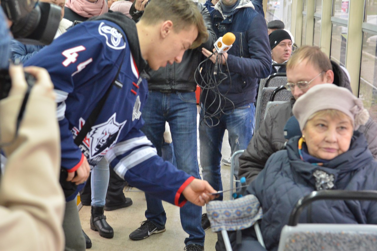 Дамир Шарипзянов и Дэн Секстон на акции в трамвае