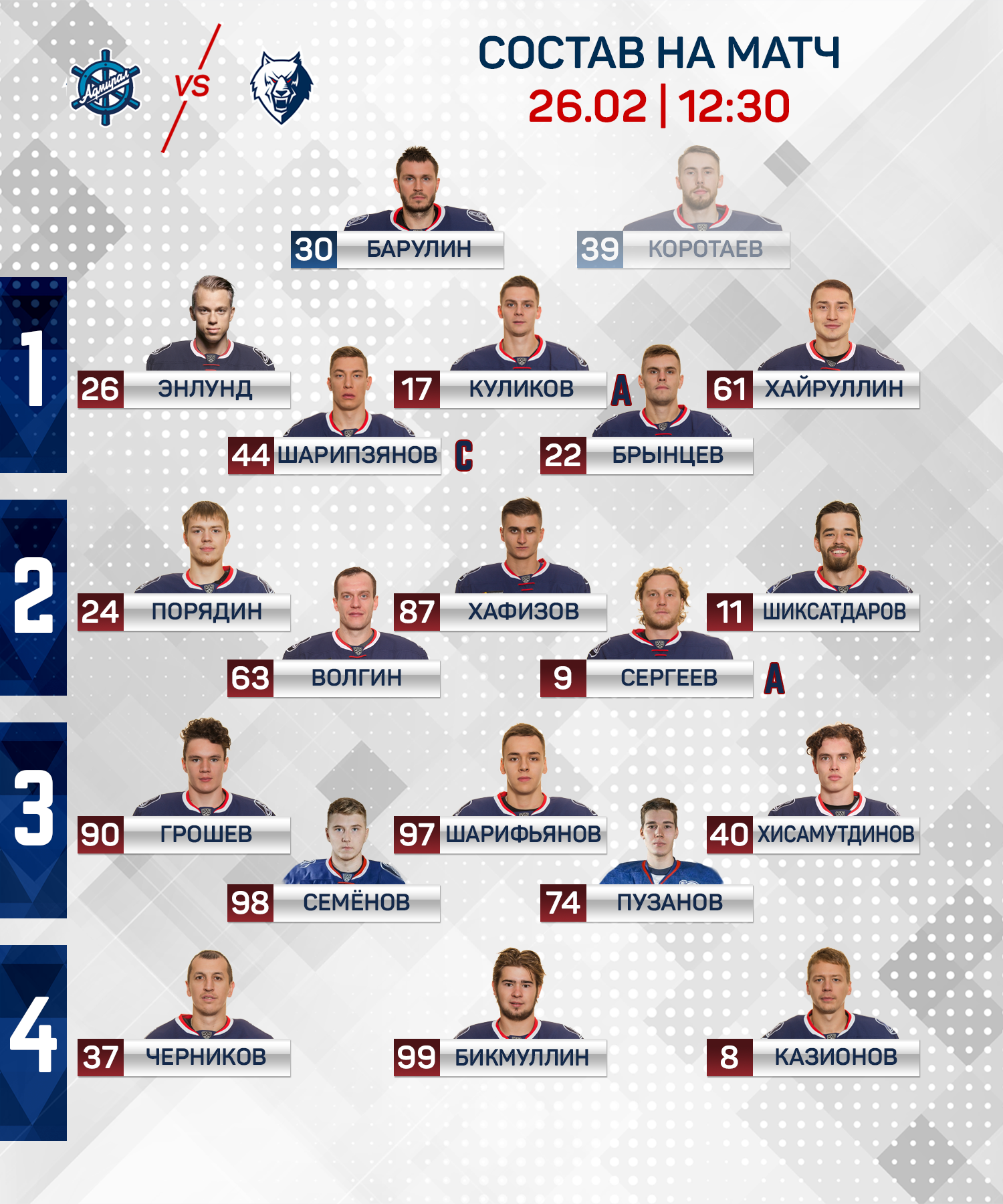 «Адмирал» - «Нефтехимик»: состав нашей команды