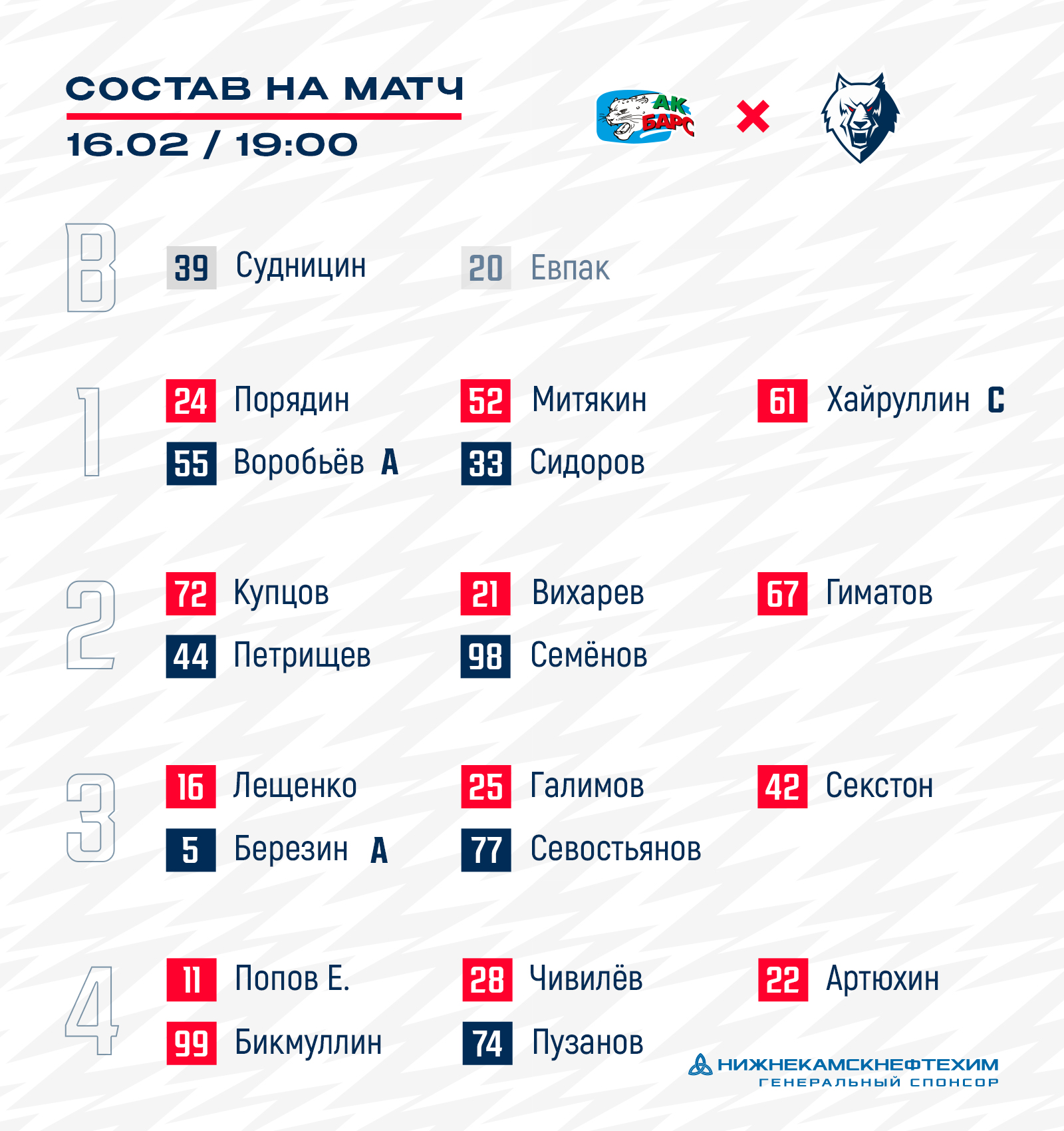 «Ак Барс» - «Нефтехимик»: состав нашей команды