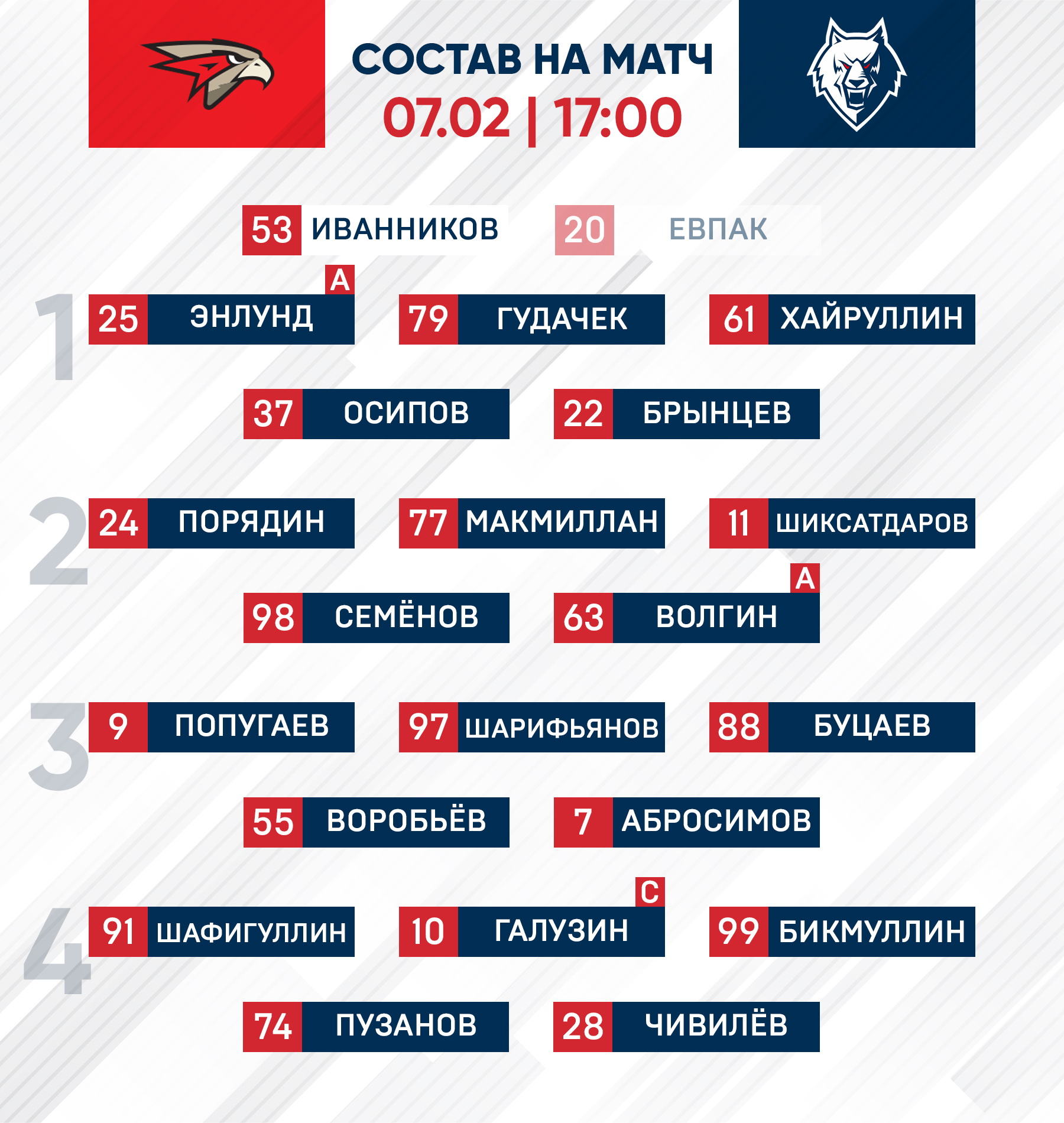 «Авангард» - «Нефтехимик»: состав нашей команды
