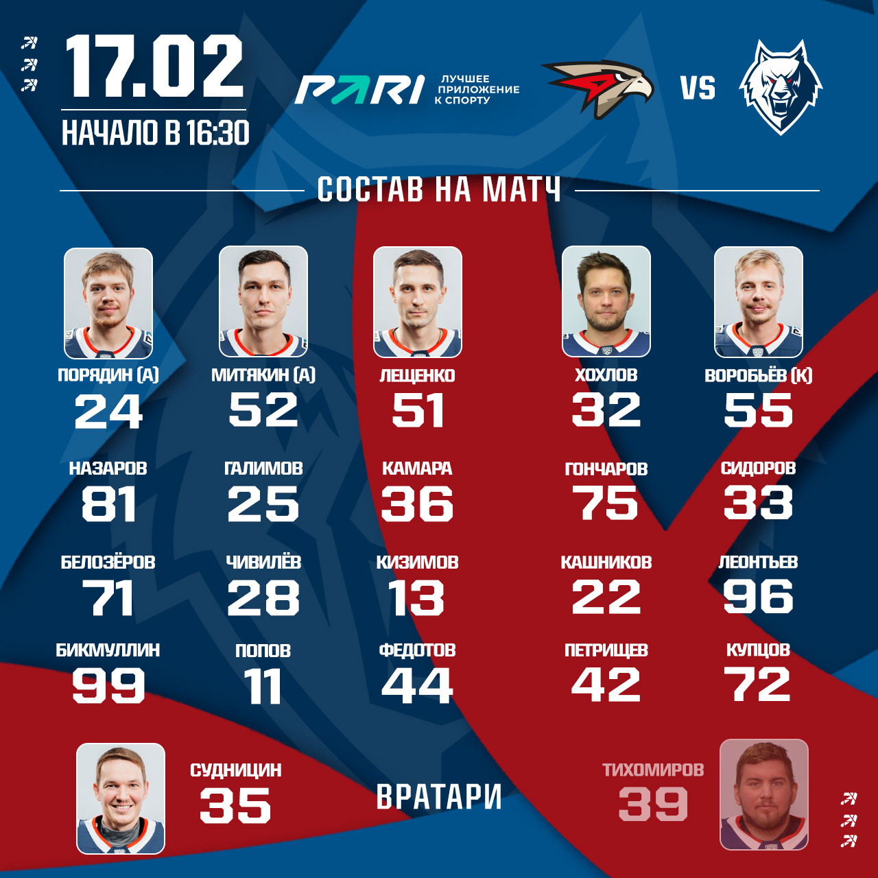 «Авангард» - «Нефтехимик». Состав нашей команды