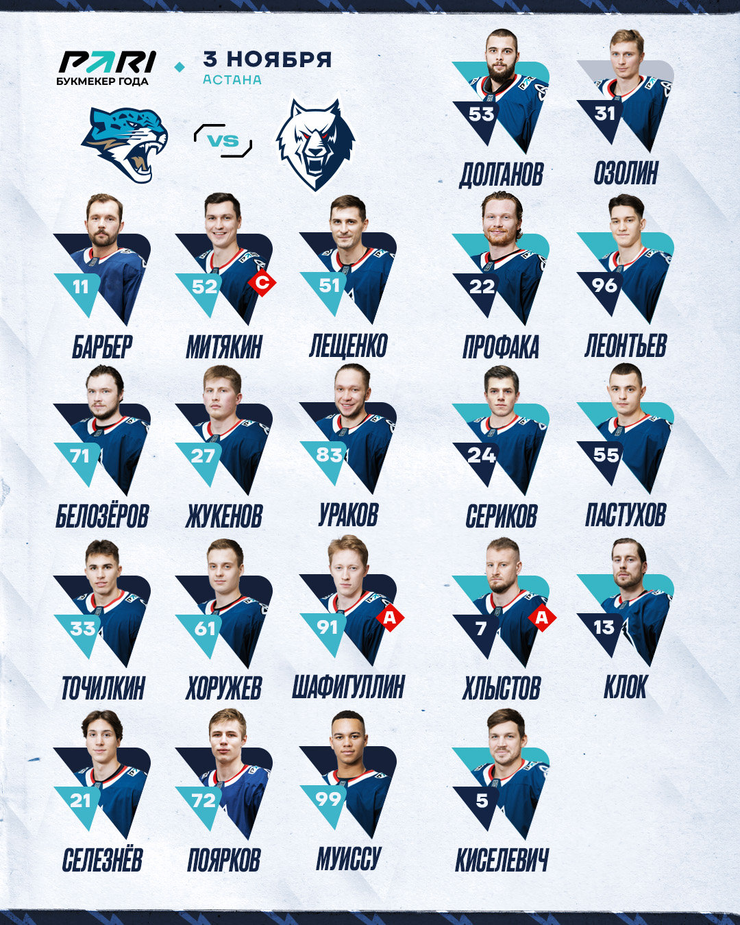 «Барыс» – «Нефтехимик»: состав нашей команды