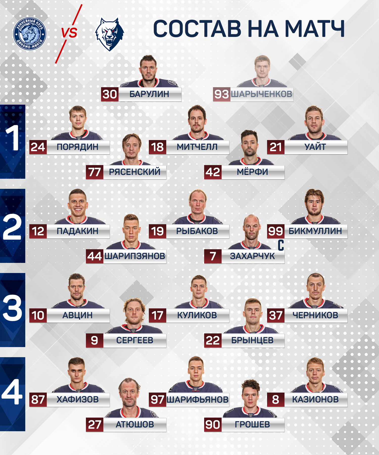 «Динамо» (Минск) - «Нефтехимик»: состав н ашей команды
