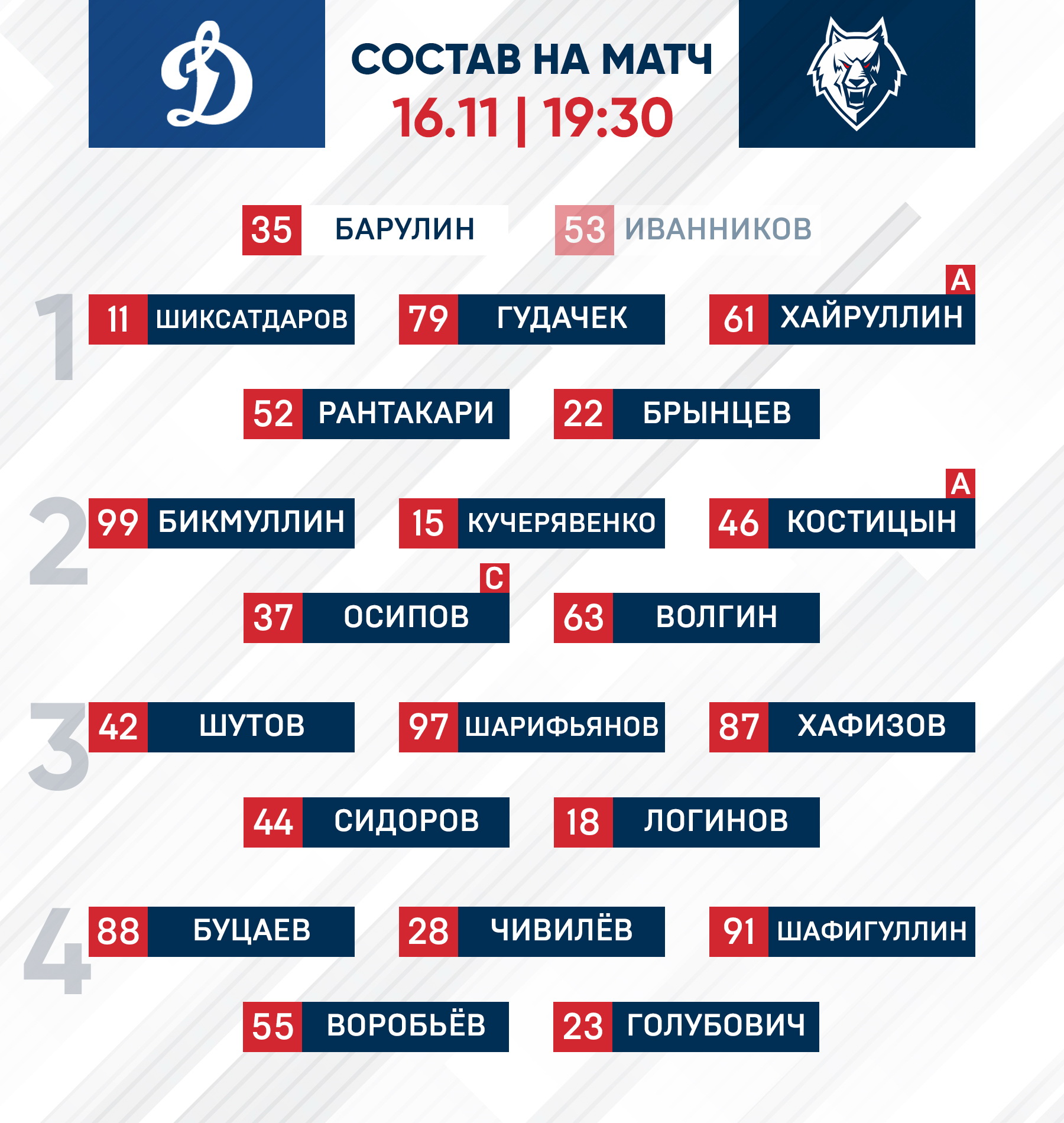 «Динамо» (Москва) - «Нефтехимик»: состав нашей команды
