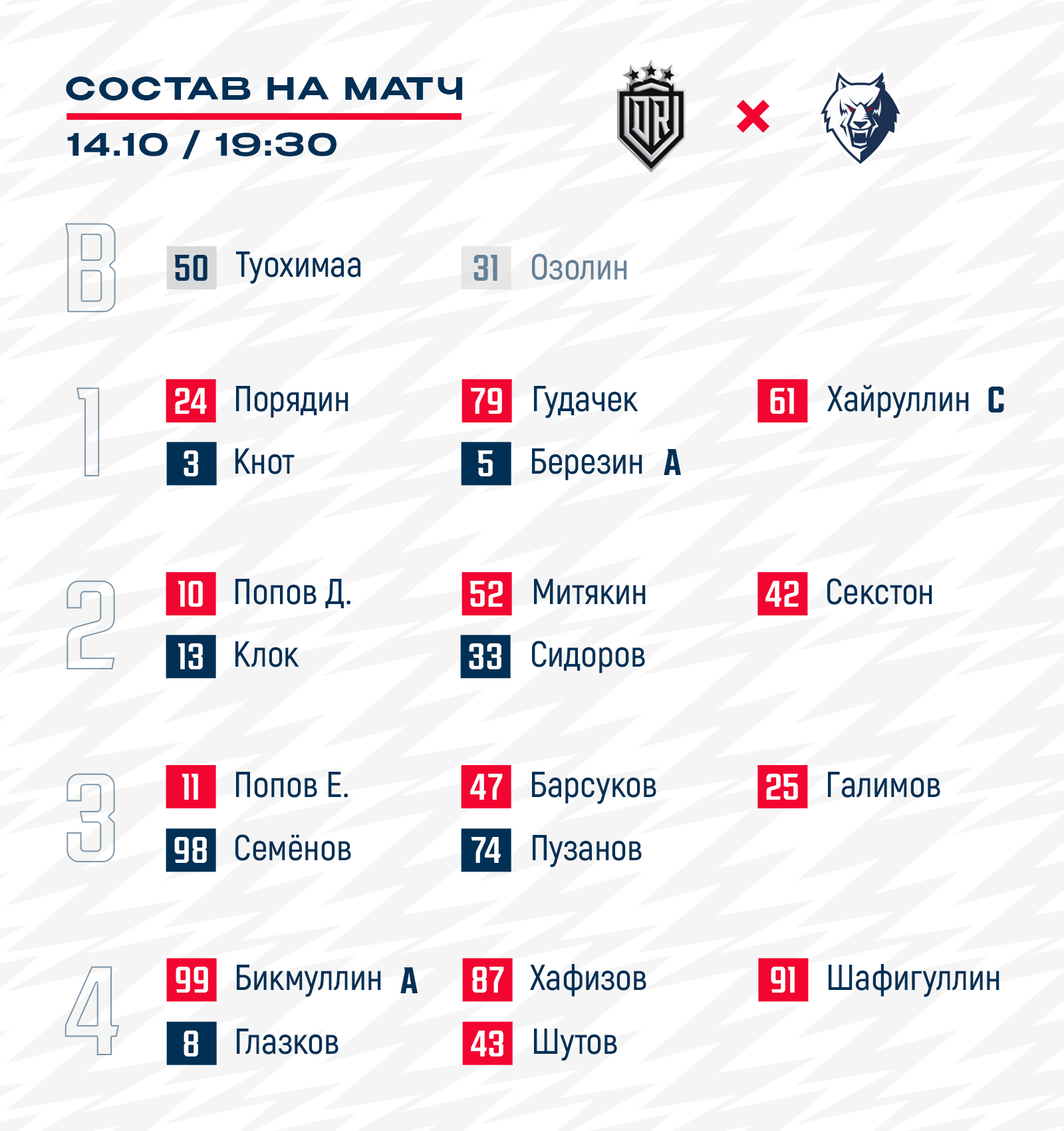 Стал известен состав нашей команды на гостевой матч регулярного чемпионата КХЛ с рижским «Динамо».