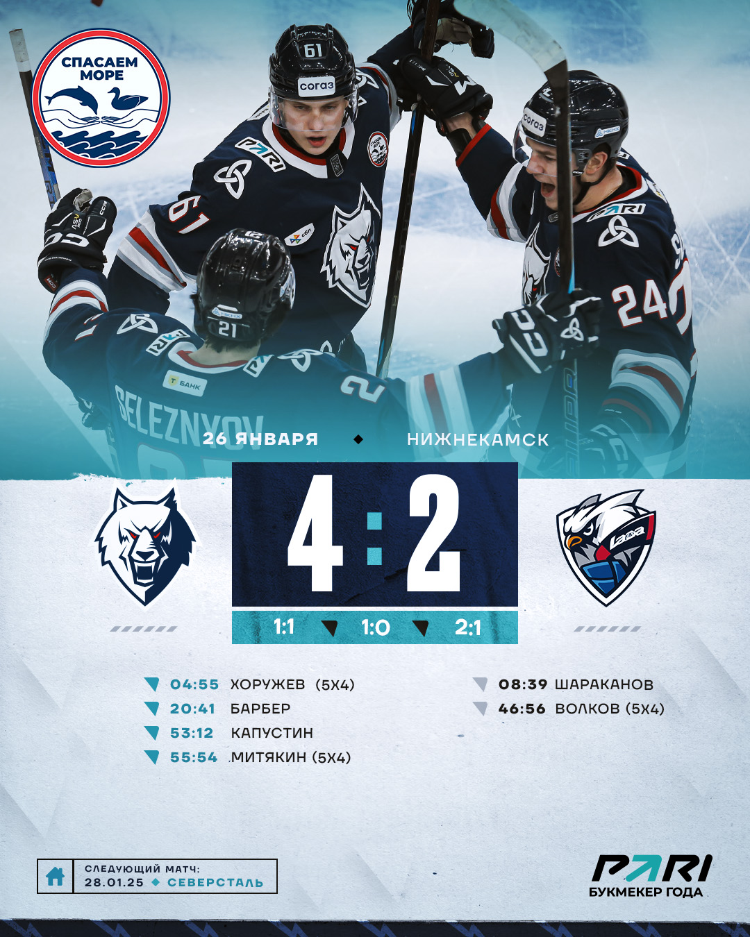 А еще через пару минут Митякин в большинстве забросил еще одну шайбу. В итоге долгожданная победа над одним из конкурентом в борьбе за выход в плей-офф.