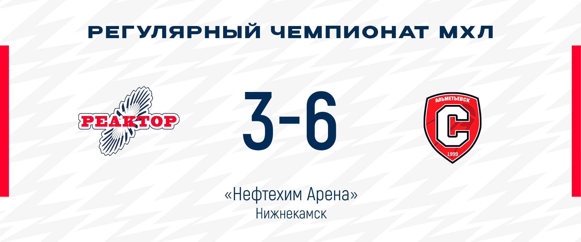 Нижнекамцы открыли счет уже на второй минуте встречи после броска Якупова, но еще в первом периоде гости отыгрались и вышли вперед.На 36-й минуте все тот же Якупов снова сделал счет равным - 2:2. Однако оставшаяся часть поединка прошла при преимущества альметьевцев. Как итог поражение «Реактора» 3:6.