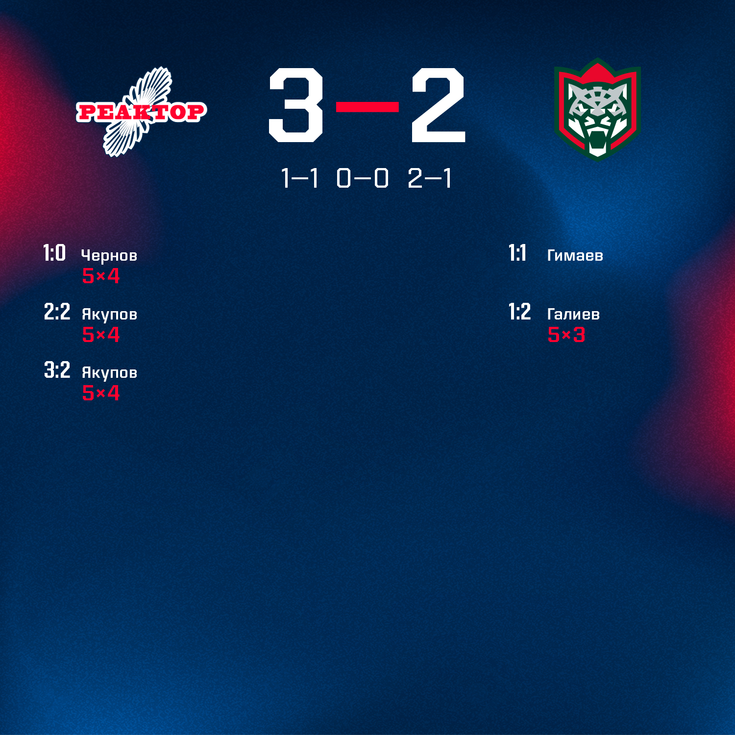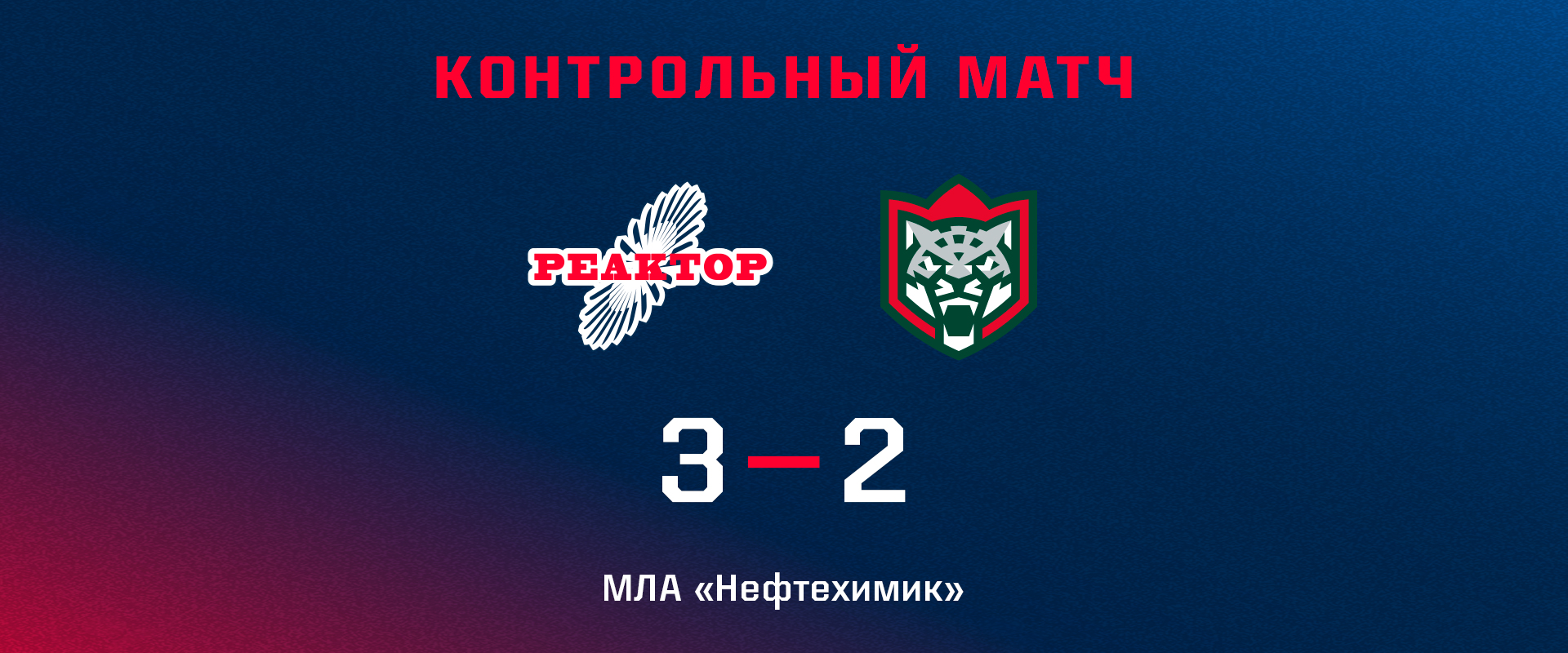 В МЛА «Нефтехимик» завершился контрольный матч между «Реактором» и казанским «Ирбисом». Победа осталась за нашей «молодежкой» 3:2.