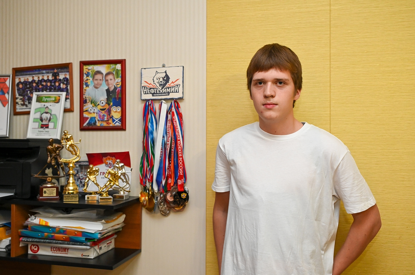 «Волки» пришли к нему в гости, чтобы поддержать Тимура. За чашкой чая завязалась интересная беседа. Гости поделились историями из своей хоккейной жизни. Тимур в свою очередь показал им свои хоккейные награды. Сюда добавим, что конце прошлого сезона его признали лучшим защитником Поволжья в своем возрасте.