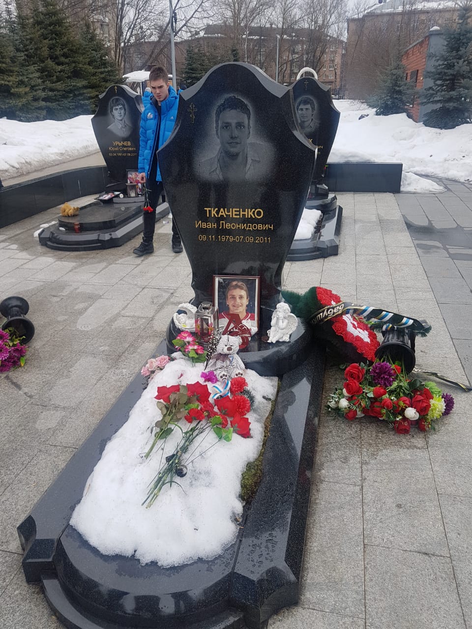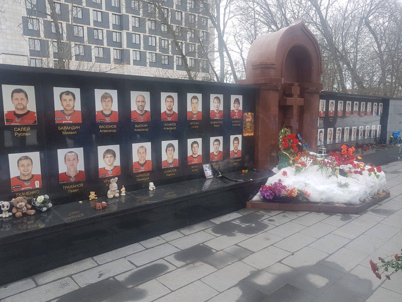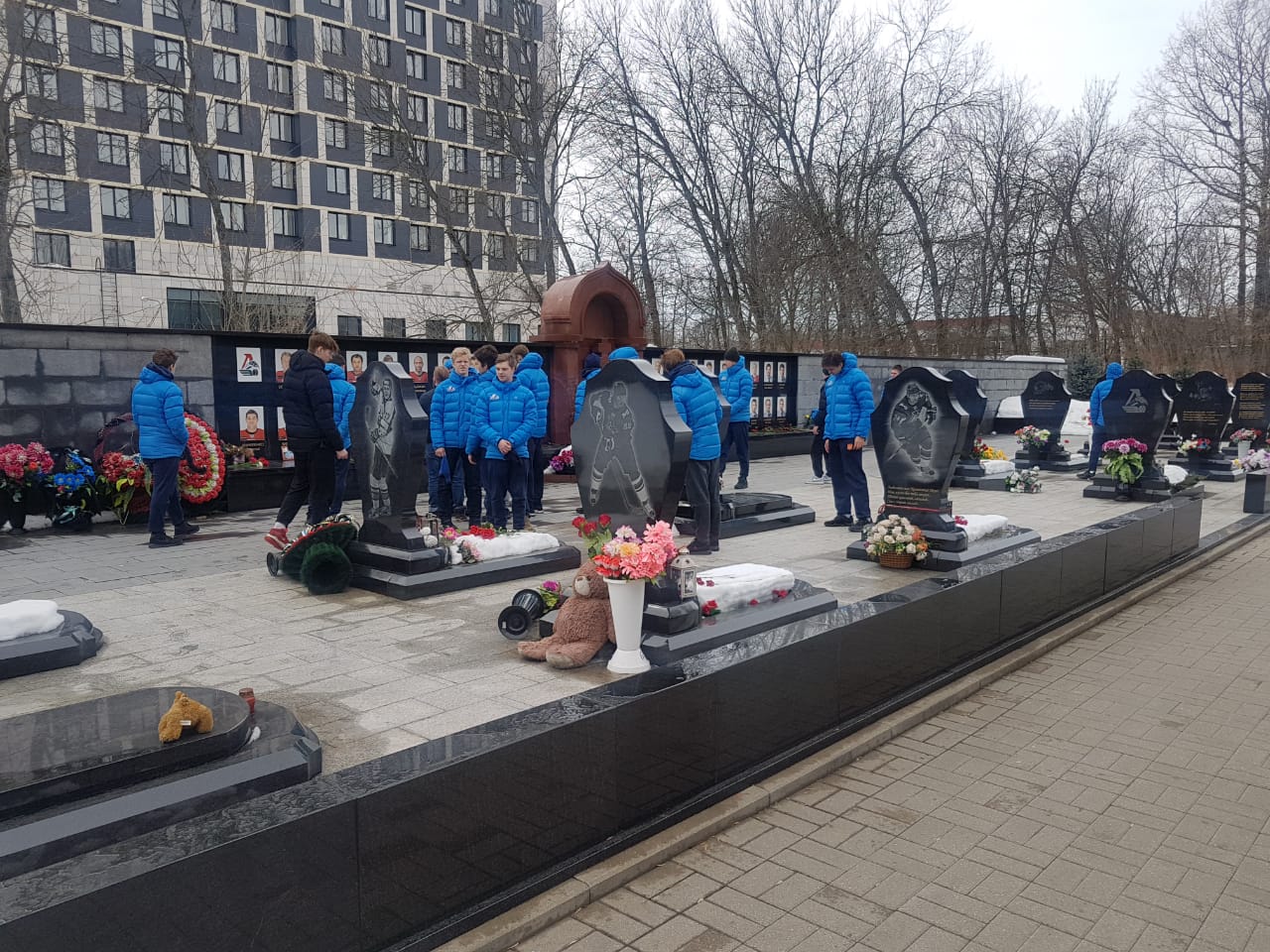Сегодня, после утренней раскатки «Реактор» в полном составе посетил мемориал на Леонтьевском кладбище, посвященный погибшим в авиакатастрофе тренерам, хоккеистам и членам команды ярославского «Локомотива».