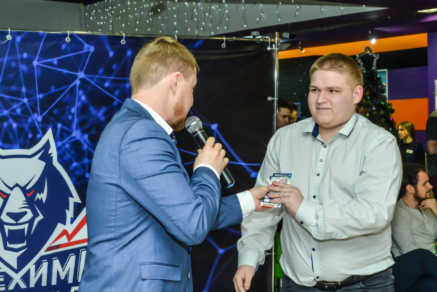 Затем собравшиеся приняли участие в конкурсе, задание которого касались выступления Ивана в «Нефтехимике». Сколько игр провел Ткаченко за «Нефтехимик» и «Нефтехимик-2», сколько очков он набрал в этих матчах. Победители получили призы в виде пригласительных на просмотр фильмов.