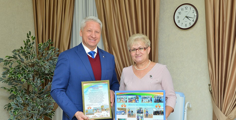Накануне к нам в клуб с благодарственным письмом в адрес команды и руководства пришла одна из организаторов фестиваля Любовь Николаевна Эргерт – завуч детского сада №75, на базе которого и состоялся праздник. На встрече с директором ХК «Нефтехимик» И.В. Ларионовым она подробно рассказала о фестивале и его перспективах проведения в последующие годы..