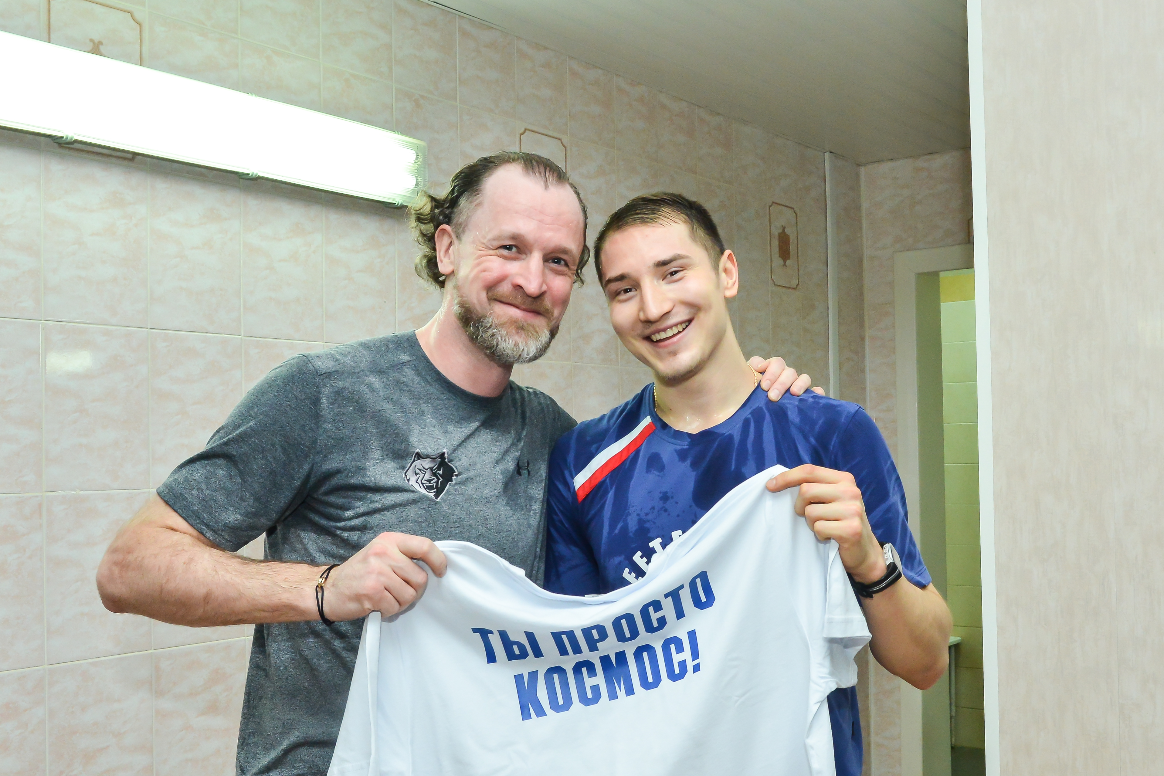 Сегодня днем на сухой тренировке команды ему была вручена «космическая» футболка. Церемонию вручения проводил капитан «Нефтехимика» Виталий Атюшов.