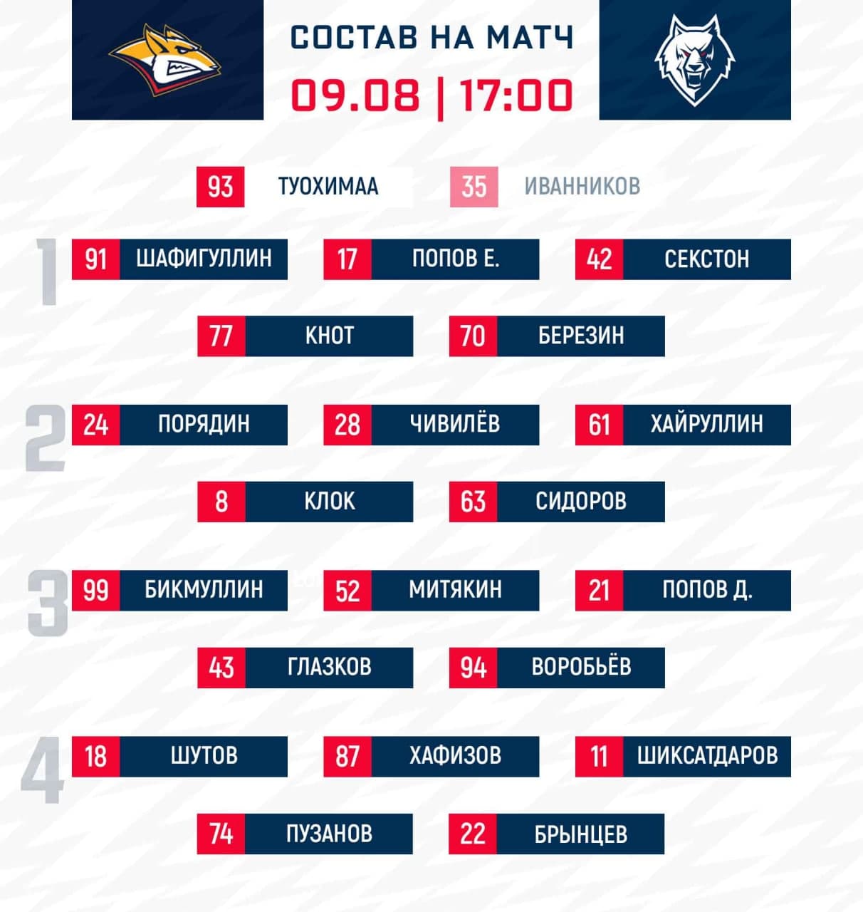 «Металлург» - «Нефтехимик»: состав нашей команды
