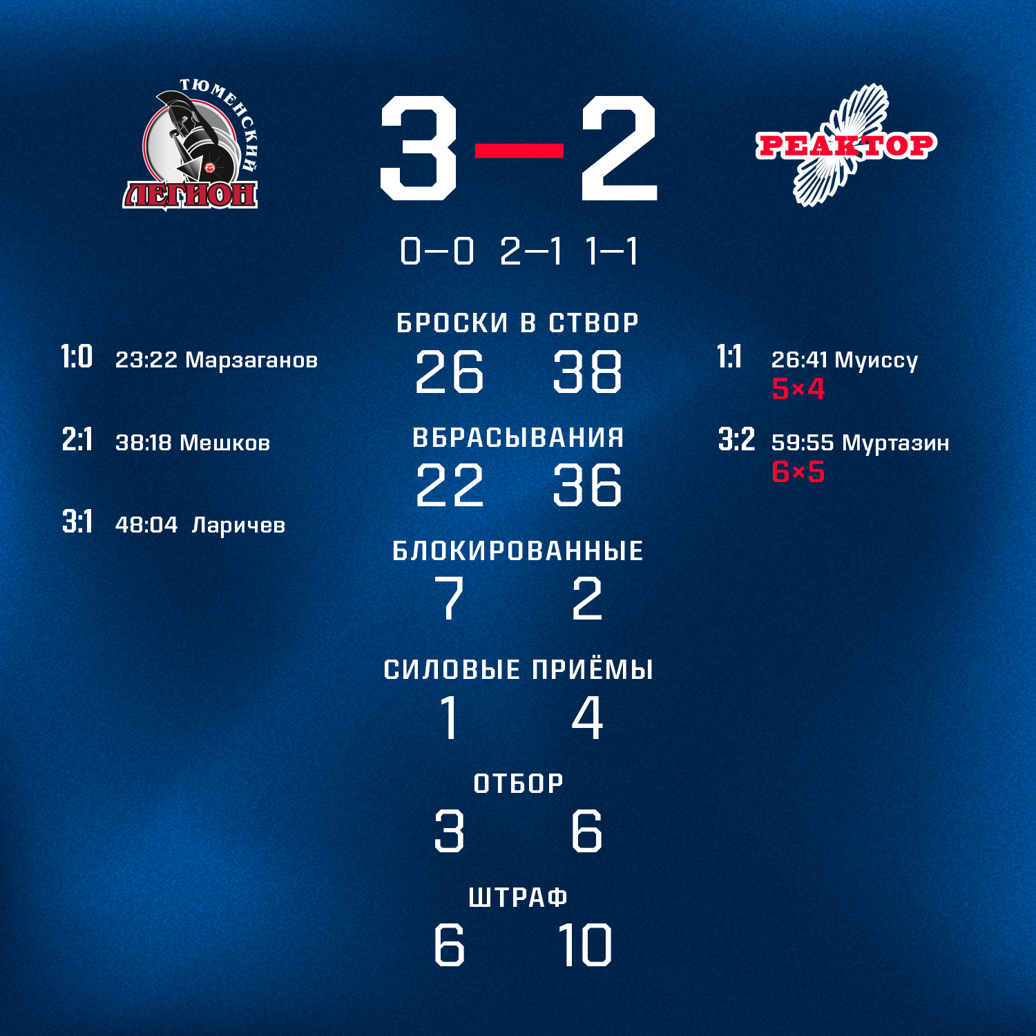 Сегодня, гостевым матчем с «Тюменским Легионом», «Реактор» стартовал в Olimpbet Чемпионат МХЛ сезон 2023/2024. Начало получилось неудачным – поражение 2:3
