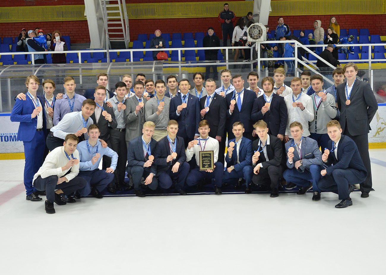 Чествование выпускников и вручение бронзовых медалей Молодежной хоккейной команде проходили под бурные овации трибун, на которых сегодня было мало свободных мест. Со словами поздравления и напутствия выступили почетные гости и родители. Так же были отмечены спортивные успехи команд ДЮСШ каждого возраста.