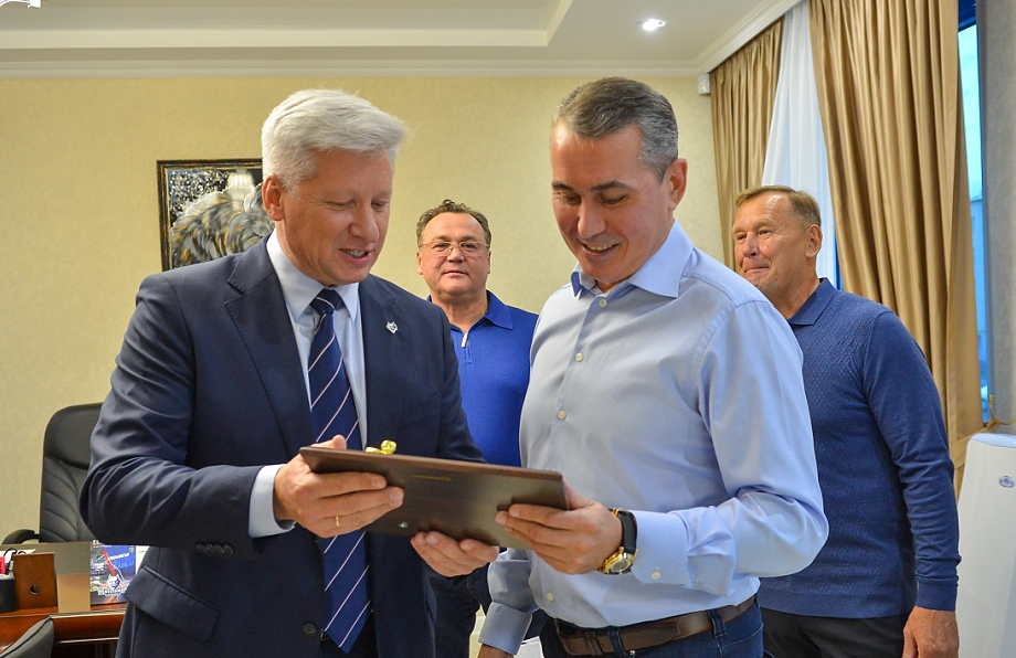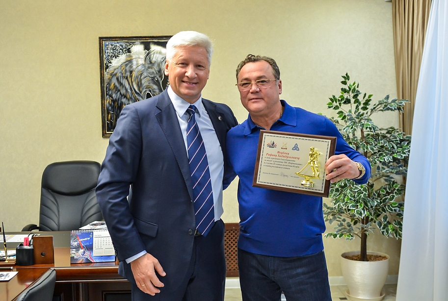 Сегодня, 18 сентября в рамках празднования 25-летия вхождения «Нефтехимика» в элиту российского хоккея в клубе чествовали Рафика Хабибулловича Якубова, Владимира Борисовича Леонова, Владимира Васильевича Кузнецова, Раила Рафисовича Якупова, Рината Фаузиевича Шарифьянова (по уважительной причине не смогли приехать Равиль Шагимарданович Шавалеев и Владимир Васильевич Кузнецов). Они в разные годы руководили ХК «Нефтехимик», внесли огромную лепту в развитие клуба. Про каждого из них можно сказать много добрых слов. Они были разными, но их объединяло любовь к хоккею, клубный патриотизм, уважение к коллегам. Потому и в клубе их всегда вспоминают добрым словом, в дни рождения, праздники обязательно шлют им теплые поздравления.