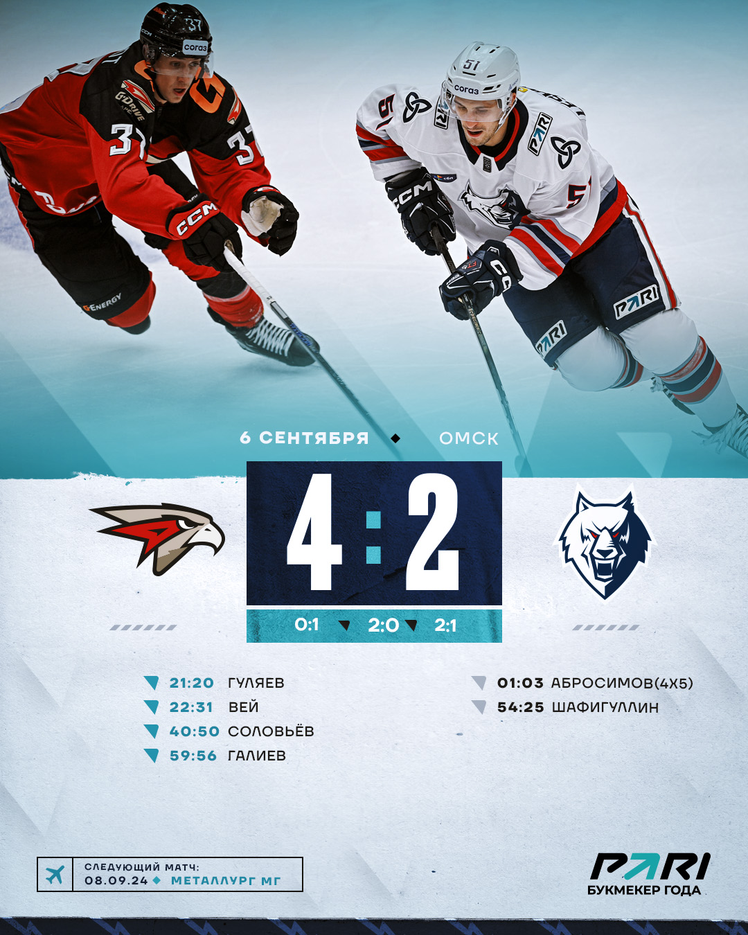 В очередном гостевом матче наша команда встречалась с омским «Авангардом» и потерпела поражение 2:4.