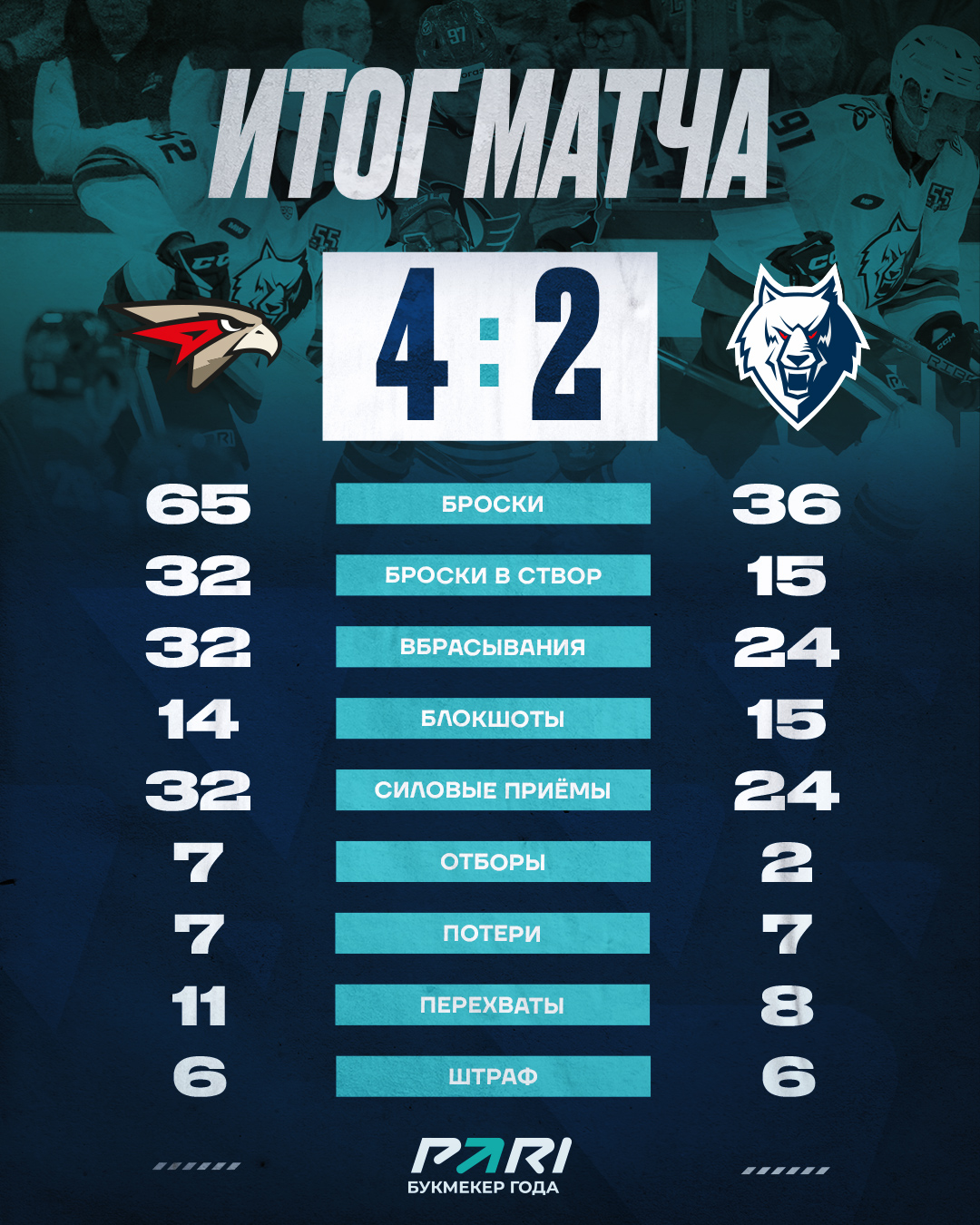 Удачно для нас сложилось начало. Уже на второй минуте счет в меньшинстве открыл Роман Абросимов. Характер игры перевернулся сразу после первого перерыва, когда омичи забросили две быстрые шайбы.Третий период также начался для «волков» с пропущенного гола, но Булат Шафигуллин своей шайбой смог вернуть интригу в матч, но отыграться сегодня не удалось, а «ястребы» смогли еще раз отличиться, когда наш тренерский штаб заменил Филиппа Долганова на шестого полевого.