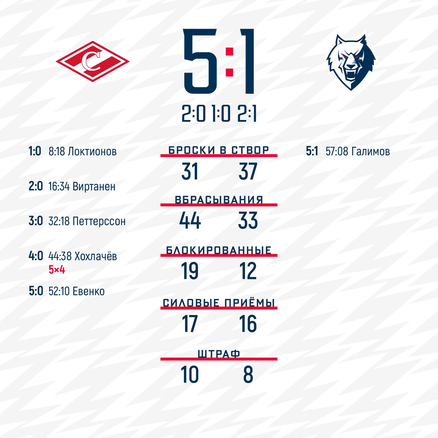 Наша команда провела в Москве матч со «Спартаком» и не смогла взять реванш за домашнее поражение 2:3 в овертайме, уступив сегодня 1:5.